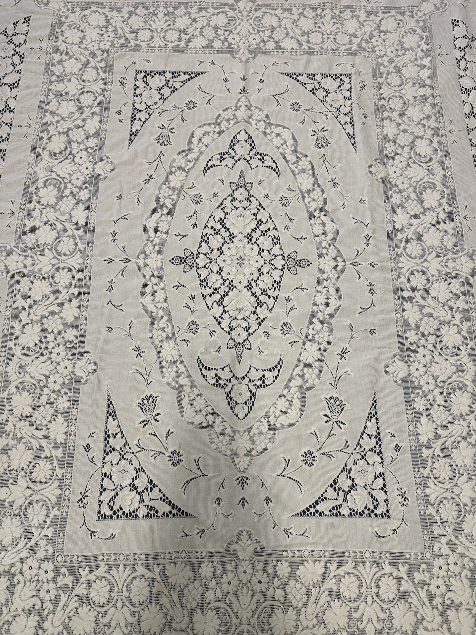 Quaker Lace Pattern 6280-02 - The romantic islands surrounding Italy produced many talented lacemakers. Their work, known as Sardinian Lace, was characterized by exquisite combinations of filet and needlepoint...as reproduced in the beauty of this pattern.